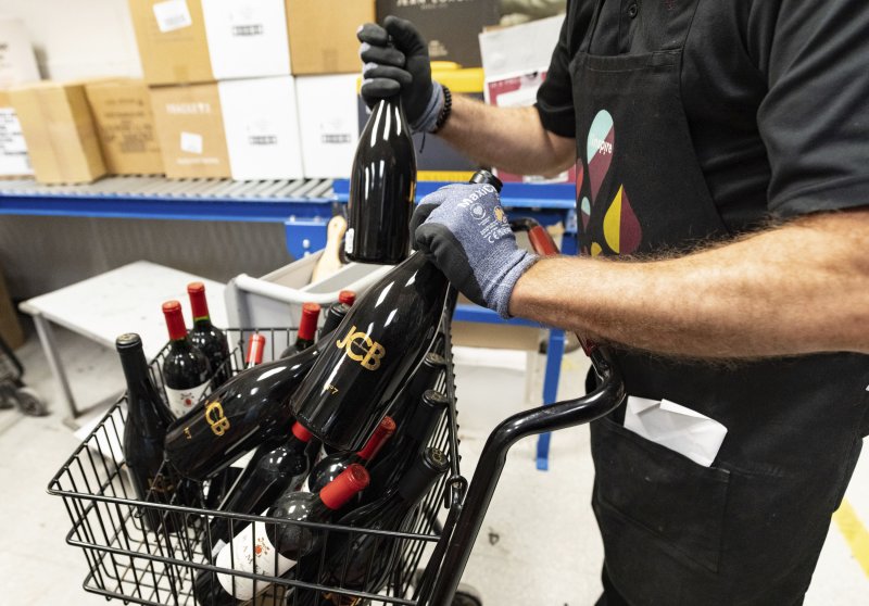 [몬트리올=AP/뉴시스] 4일(현지 시간) 캐나다 퀘벡주 몬트리올의 SAQ 주류 판매장에서 이곳 직원이 미국산 와인을 매대에서 없애고 있다. 캐나다와 멕시코가 미국이 부과한 관세에 대응해 보복 관세 방침을 밝힌 가운데 도널드 트럼프 미국 대통령은 이에 추가 관세를 부과하겠다고 밝혔다. 2025.03.05. [서울=뉴시스] 류현주 기자 = 도널드 트럼프 미국 대통령이 4일(현지 시간) 캐나다와 멕시코에 25%의 전면 관세를 부과했다.
