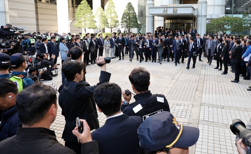 경찰은 같은 날 오후 3시 25분쯤 법원 정문 앞에서 경찰관을 밀어트린 50대 남성 B 씨에 대해서는 이달 4일 불송치했다.