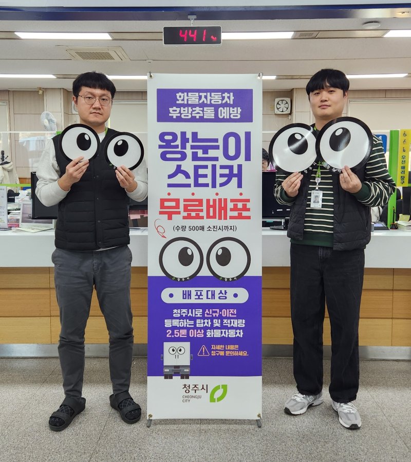 [청주=뉴시스] 임선우 기자 = 충북 청주시 차량등록사업소는 화물차 후방 추돌사고 예방을 위해 왕눈이 스티커를 무료 배포한다고 5일 밝혔다.