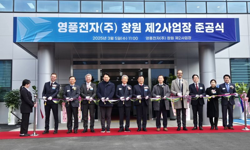 [창원=뉴시스]홍정명 기자 = 경남 방산기업인 영풍전자 창원 제2사업장 준공식이 5일 영풍전자 류하열 회장, 방위사업청 김태곤 국제협력관, 경남도 류명현 산업국장, 창원특례시 홍남표 시장 등 100여 명이 참석한 가운데 열렸다.