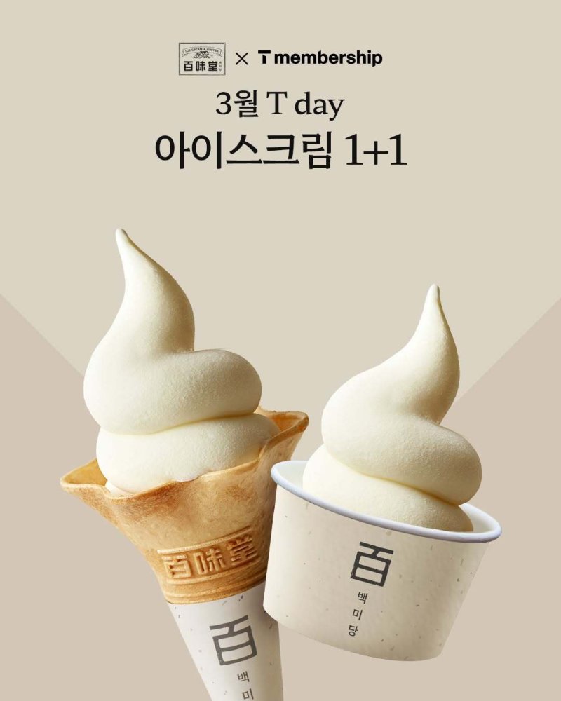 백미당은 SKT와 협업해 멤버십 이용 고객에게 특별 혜택을 제공하는 'SKT T 데이' 프로모션도 진행한다. 이번 프로모션은 오는 9일까지 우유∙두유 아이스크림 메뉴 구매 시 동일 제품을 추가로 증정하는 '1+1 이벤트'로 T 멤버십 앱에서 다운로드한 쿠폰을 직원에게 제시하면 혜택을 받을 수 있다. 다음달부터는 상시 제휴를 추진해 매달 다채로운 할인 혜택을 담은 이벤트를 진행할 계획이다.