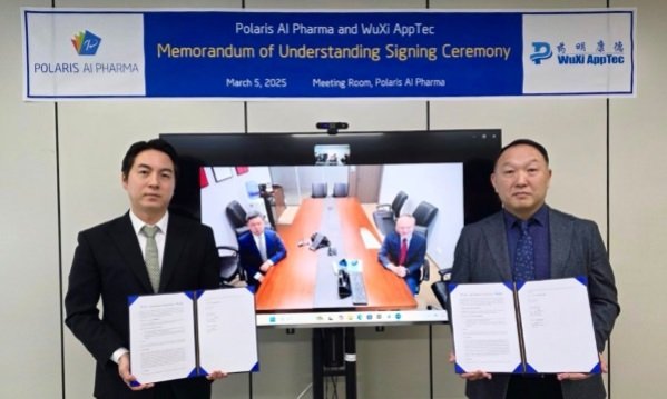 [서울=뉴시스] 김경택 기자 = 폴라리스AI파마는 글로벌 위탁연구개발생산(CRDMO) 기업 우시앱텍과 의약품·헬스케어 사업에 상호 협력하기 위한 포괄적인 업무협약(MOU)을 체결했다고 6일 밝혔다.