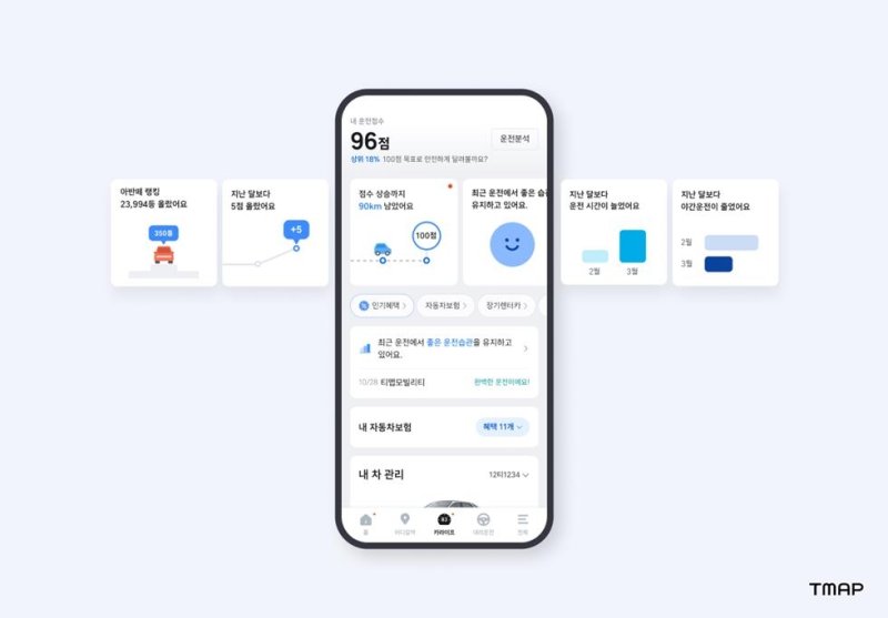 서비스 개인화를 통해 운전점수 분석을 비롯해 보험 할인 혜택, 차량 관리까지 사용자 맞춤형 정보를 제공, 직관적 이용을 돕는다.