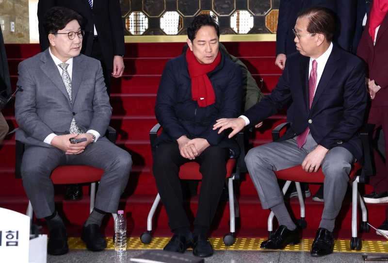 권영세 국민의힘 비상대책위원장과 권성동 원내대표는 이날 오전 국회 로텐더홀에서 단식 중인 박 의원을 방문해 단식 중단을 요청했다.