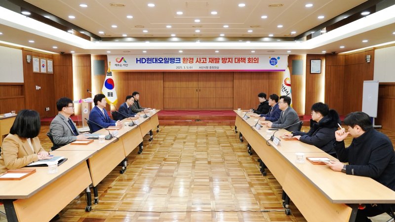 6일 서산시에 따르면 전날 HD현대오일뱅크 경영 관계자와 함께 개최한 긴급 환경사고 재발 방지대책 회의에서 시는 진정성 있는 사과와 책임 있는 자세를 보여줄 것을 HD현대오일뱅크에 강력히 요구했다.
