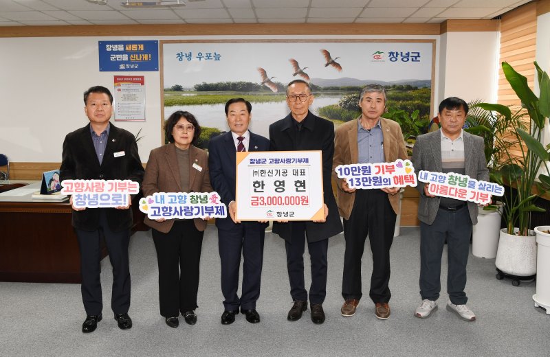 [창녕=뉴시스] 안지율 기자 = 경남 창녕군은 한영현 도천면 명예 면장이 고향사랑기부금 300만원을 기탁했다고 6일 밝혔다.