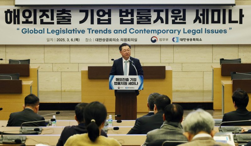 박 상근부회장은 환영사에서 "글로벌 시장에서 법률 리스크는 기업 생존을 좌우하는 핵심 요소로 부상했다"며 "대한상의는 법무부와 함께 우리 기업이 해외 진출 과정에서 직면하는 법적 장벽을 낮추고, 안정적인 경영 환경을 조성할 수 있도록 지속적으로 지원할 것"이라고 밝혔다.