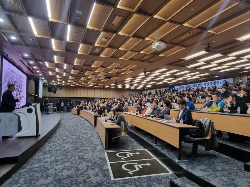 [시흥=뉴시스] 박석희 기자 = 경기 시흥시가 관내 배곧신도시에 ‘시흥 배곧 서울대병원(가칭)’ 유치에 주력하는 가운데 전날 주민설명회를 열고 주민의견을 수렴했다고 6일 밝혔다. 서울대 시흥캠퍼스에서 열린 설명회에는 주민 300여명이 참석했다.