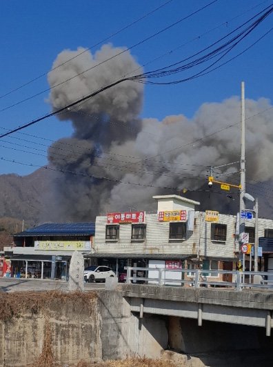6일 경기 포천시에서 한미 연합훈련 도중 전투기의 폭탄이 민가에 떨어지는 오폭 사고가 발생, 검은 연기가 피어오르고 있다. (독자 제공. 재판매 및 DB 금지) 2025.3.6/뉴스1