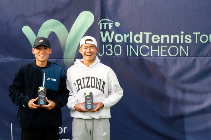 (서울=연합뉴스) 김동찬 기자 = 황주찬(서인천고)-김원민(안동SC) 조가 국제테니스연맹(ITF) 바볼랏 인천국제주니어대회 남자 복식에서 우승했다.