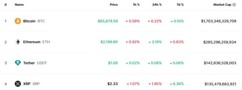 9일 오전 7시 30분 현재 글로벌 코인 시황 중계사이트인 코인마켓캡에서 비트코인은 24시간 전보다 0.22% 하락한 8만5879달러를 기록하고 있다.