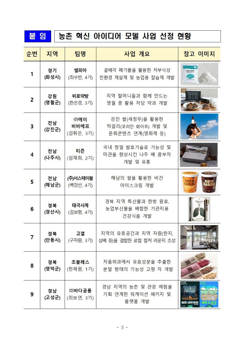 농촌혁신 아이디어 모델 확산 사업은 농촌 내 농업 외 다양한 사업모델을 발굴하기 위해 2025년 새롭게 시작하는 사업이다.