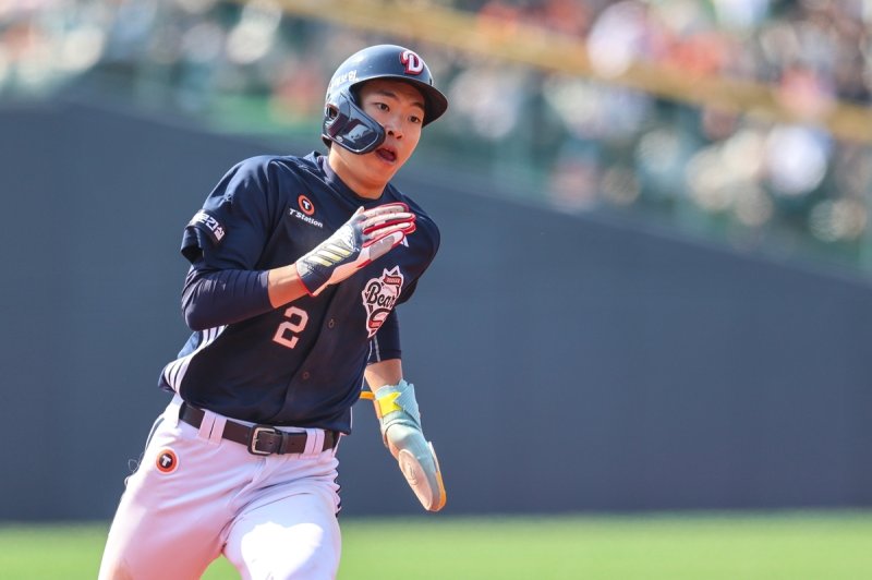 두산 리드오프로 출전한 김민석은 이날 5타수 2안타 2타점 1득점으로 승리를 이끌었다.