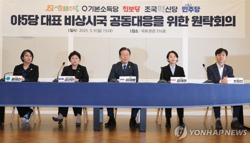 당장 민주당, 혁신당을 비롯한 야5당 대표는 오후 국회에서 '비상시국 공동 대응을 위한 원탁회의'를 열고 이후 상황 대처에 보조를 맞추기로 했다.