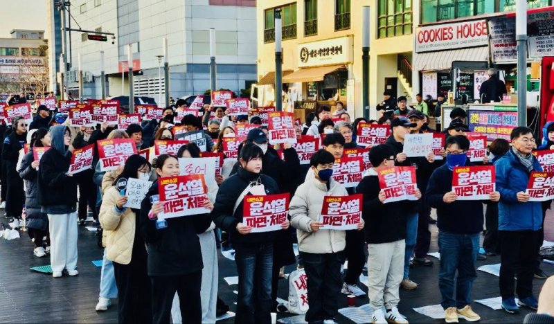 윤석열즉각퇴진 사회대개혁 강릉비상행동 등 집회 참가자들은 이날 오후 5시께 강릉 월화거리에서 법원, 검찰의 결정을 비판하면서 윤 대통령 파면과 처벌을 촉구했다.