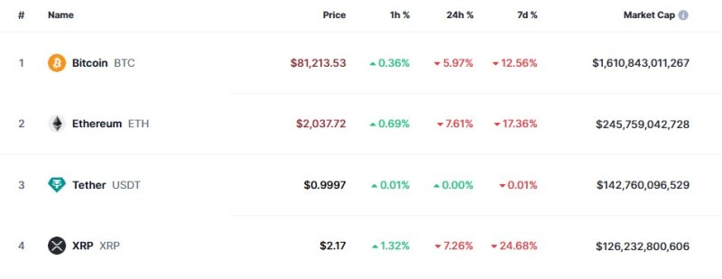 10일 오전 10시 20분 현재 글로벌 코인 시황 중계 사이트인 코인마켓캡에서 비트코인은 24시간 전보다 5.97% 급락한 8만1213달러를 기록하고 있다.