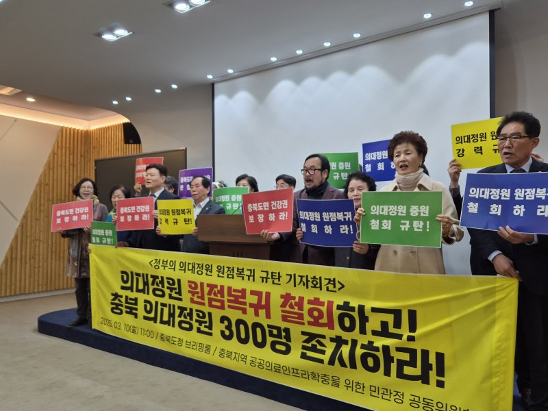 이어 "의료 취약지인 충북은 의료불균형 문제를 해소하기 위해 의대 증원이 반드시 필요해 전국 최대 규모의 증원 폭(89명→300명)을 배정받았던 것"이라며 "그러나 이번 정원 동결 발표로 충북은 평생 의료취약지에서 벗어날 수 없게 됐다"고 했다.