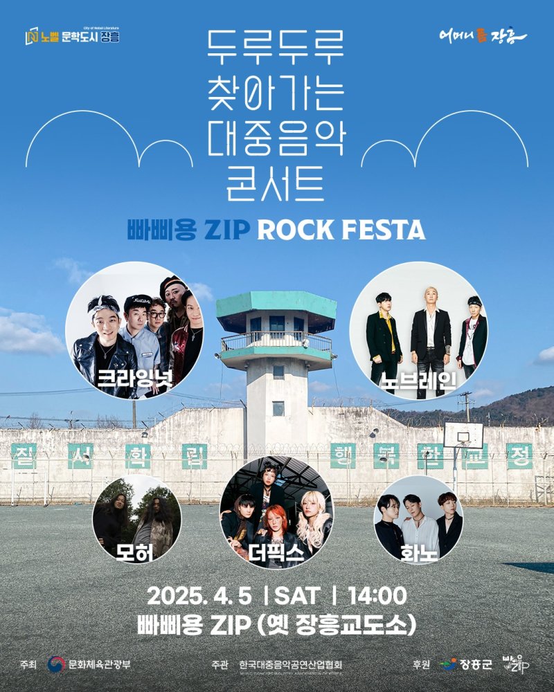 [장흥=뉴시스] 배상현 기자 = 장흥군은 내달 5일 오후 2시 옛 장흥교도소 '빠삐용Zip'에서 '두루두루 찾아가는 대중음악 콘서트 - 빠삐용집 락 페스타(Zip Rock Festa)'가 열린다고 10일 밝혔다.