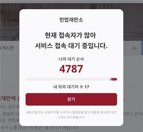 [샷!] 탄핵선고일 앞두고 헌재 게시판 접속 폭주평소보다 게시글 7배 이상…수천명 접속 대기