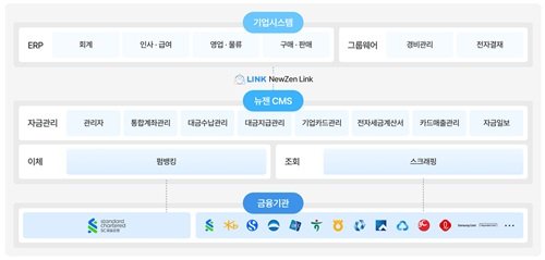 '뉴젠 CMS'는 통합 자금 관리, 대금 지급 관리, 기업카드 관리, 전자세금계산서 매출 자동 관리, 카드 매출 관리, 자금 관리 등 6가지 핵심 기능을 제공한다.