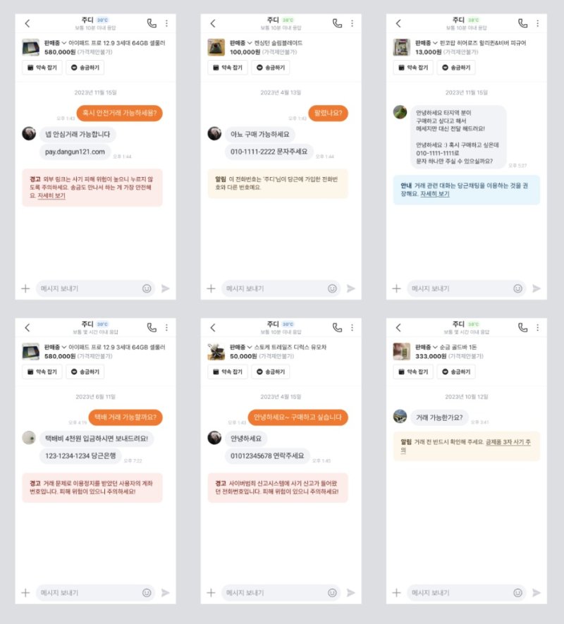앱 내 채팅 서비스는 사기 이력이 있는 판매자를 식별한다.