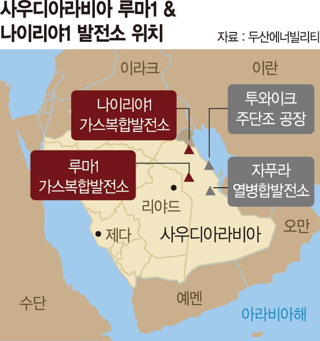 두산에너빌리티는 프로젝트 개발사업자(디벨로퍼)인 한국전력공사 컨소시엄과 '사우디 루마1, 나이리야1 가스복합발전소' 건설공사 계약을 체결했다고 13일 밝혔다. 컨소시엄은 한전과 사우디전력공사(SEC), 사우디 최대 민자발전사인 ACWA Power로 구성됐다.