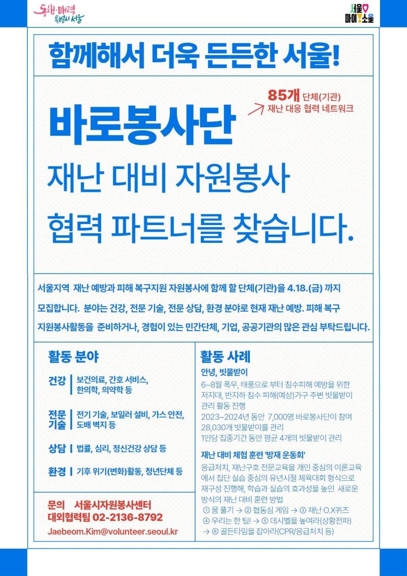 바로봉사단 관련 궁금한 사항이나 협력 기관 모집 관련 세부 내용은 누리집(volunteer.seoul.go.kr)의 공지 사항을 참고하면 된다.