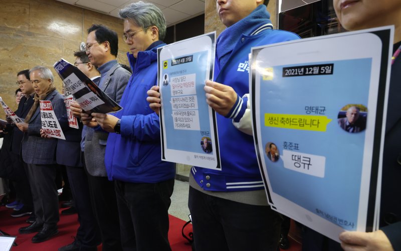 이에 진상조사단은 홍 시장을 겨냥해 "명태균 휴대폰에 목소리나 카톡 한 자도 없을 것이라던 앞선 주장과 달리 명태균 씨와 주고 받은 카톡 내용이 공개됐다며 "책임 있는 대국민 사과와 함께 본인의 말대로 '정계은퇴' 해야 한다"고 압박했다.