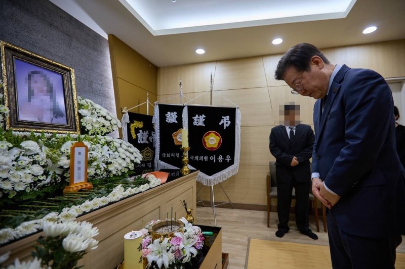 이번 조문은 지난 12일 테러 위협 관련 제보가 들어온 이후 외부 활동을 자제해 온 이 대표의 첫 외부 공개 행보이다.