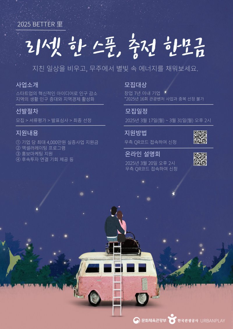 BETTER里 사업은 혁신적인 아이디어와 사업 모델을 제시하는 관광 스타트업을 통해 지역의 생활 인구를 늘리고, 경제를 활성화하는 프로그램이다.