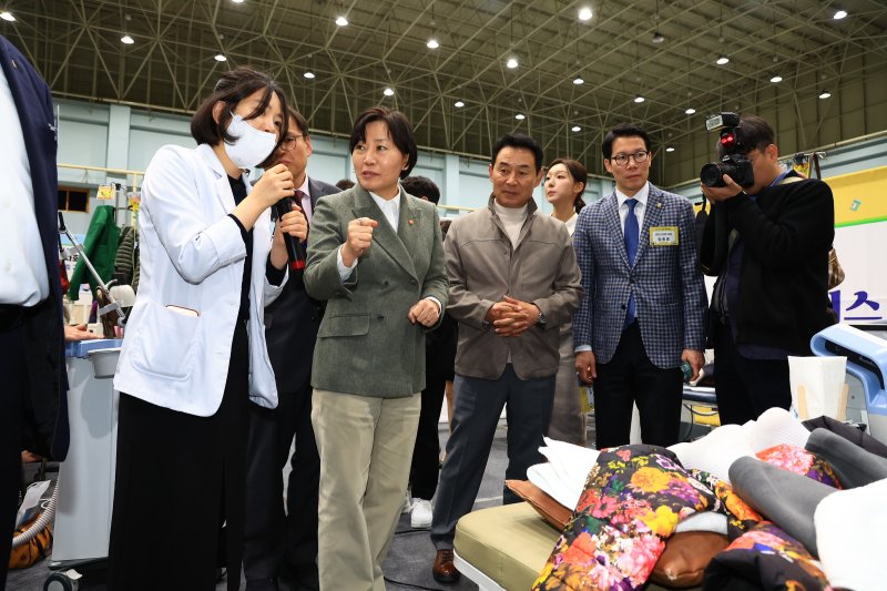 거동이 어려운 노인들을 위해 순회버스도 운영된다. 현장서 이뤄지는 진료비와 처방약도 전액 무료다. 왕진버스는 단순히 진료를 넘어 '찾아가는 생활 서비스'로 확대되고 있다. 이날 진료를 받은 80대 한 어르신은 수액을 맞으면서 이발을 받았다. 옆에서는 네일아트와 손 마사지 서비스가 제공됐다.