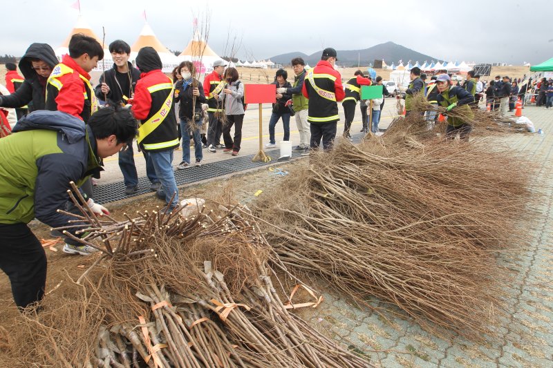 시는 당초 '제주 들불 축제' 마지막 날이던 지난 16일 새별오름 행사장에서 묘목 2400주를 시민들에게 무상 공급할 예정이었다. 그러나 강풍 등 기상악화로 축제가 취소되면서 이 행사 일정을 변경했다.