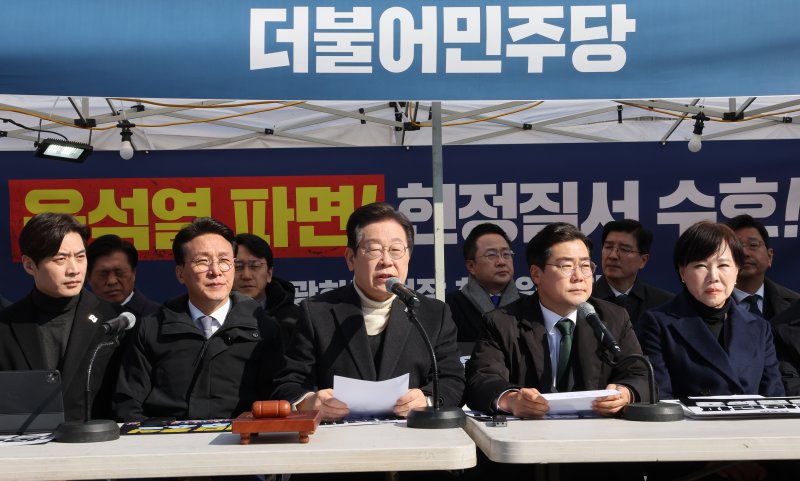 오는 26일 공직선거법 위반 혐의 2심 선고를 앞둔 이 대표로서는 하루라도 빨리 윤 대통령이 파면된 뒤 조기 대선으로 넘어가야 하는 처지에 놓여 있다.