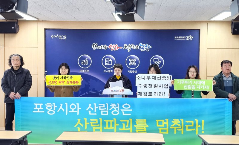 [포항=뉴시스]송종욱 기자 = "최근 포항시·산림청의 소나무재선충병 방제 수종전환, 골프장 조성, 항사댐 건설 등으로 숲이 사라지고 있다"