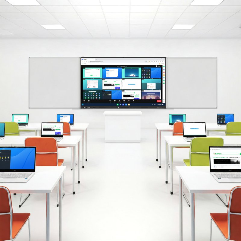 전자칠판에서도 웨일북과 같이 학생들의 기기를 실시간으로 모니터링하고 선생님과 학생이 수업 자료를 바로 공유하며 수업을 능동적으로 참여할 수 있으며 집중력이 필요한 활동에서는 전자칠판에서 학생들의 기기를 원격 제어해 집중 모드를 설정할 수 있다.
