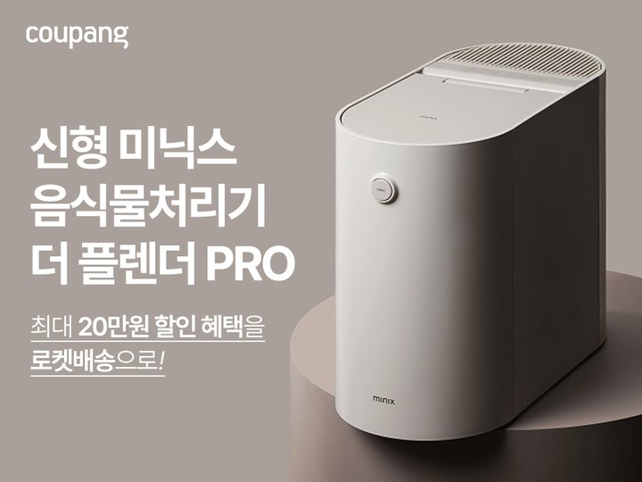 (서울=뉴스1) 윤수희 기자 = 쿠팡은 앳홈의 가전 브랜드 '미닉스'가 내놓은 신형 음식물쓰레기 처리기 '더 플렌더 PRO'(프로) 사전판매를 21일 오후 7시부터 오는 24일까지 진행한다고 밝혔다. 사전구매 시 제품은 25일부터 로켓배송을 통해 배송받을 수 있다.