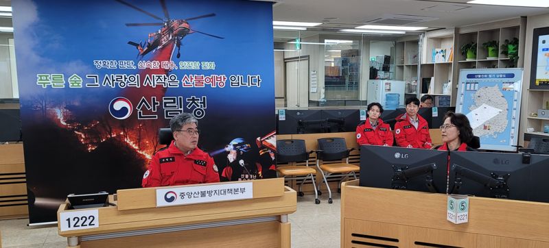 임 청장은 "인명과 재산피해가 발생하지 않도록 산불현장통합지휘본부와 중앙산불방지대책본부가 긴밀히 협조하고 유관기관은 진화자원을 체계적으로 운영해 달라"고 당부했다. 산림청 제공