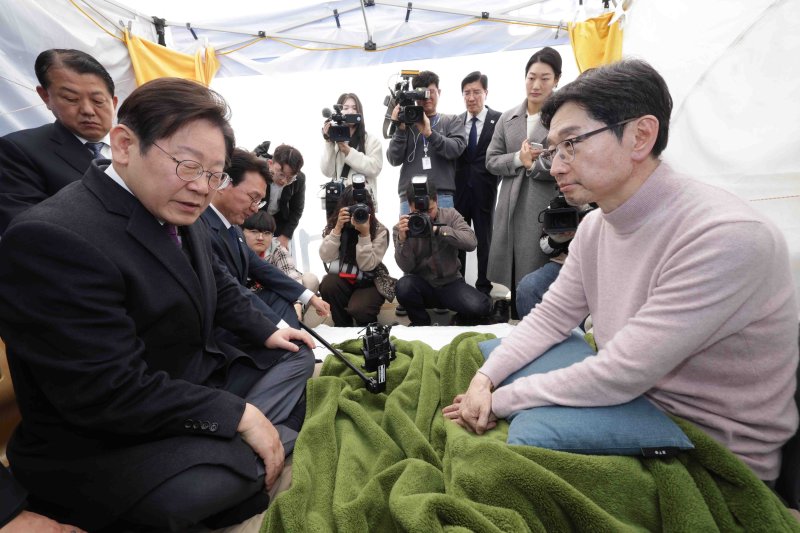 이재명 민주당 대표는 전날 당 지도부와 함께 김 전 지사를 찾아 "충분히 의지는 전달됐을 것이다. 살아서 싸워야 한다"고 격려하며 단식 중단을 요청했다.