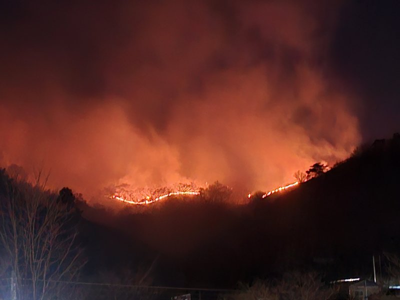 당국은 야간 산불이 더 번지는 것을 막기 위해 인력 1777명과 장비 212대를 투입해 총력 진화 중이다.