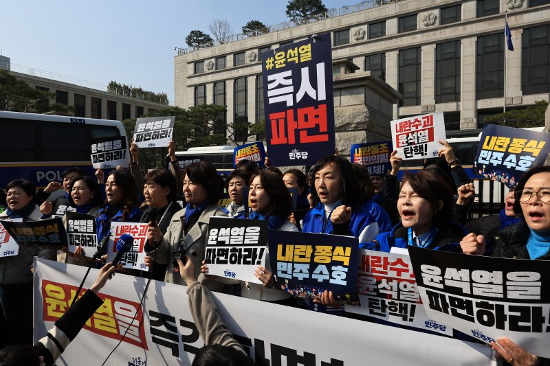 23일 정치권에 따르면 민주당은 지난 21일부터 헌재 앞에서 매일 2개 상임위원회씩 조를 짜서 아침저녁으로 윤 대통령 탄핵 심판 선고일까지 기자회견에 나섰다.