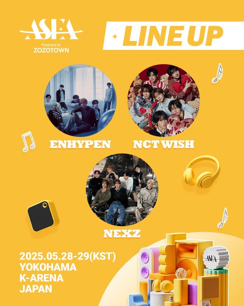 24일 제2회 '아시아 스타 엔터테이너 어워즈 2025 presented by 조조타운'(약칭 ASEA 2025) 조직위원회는 올해 엔하이픈, 엔시티 위시, 넥스지가 출연한다고 발표했다.