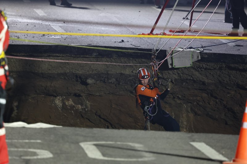 김창섭 강동소방서 생활행정과장은 "대원 30여 명이 로프를 이용해 싱크홀 안으로 들어가 오토바이가 추락한 것으로 보이는 부분을 맨눈으로 확인할 수밖에 없다"고 설명했다.
