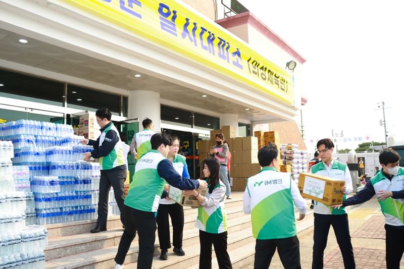 DGB금융지주와 iM뱅크 임직원으로 구성된 긴급구호봉사단은 이재민들의 임시 대피소로 지정된 의성체육관에 파견돼 직접 구호 물품을 전달하고, 산불 피해로 삶의 터전을 잃은 주민들을 위로했다.