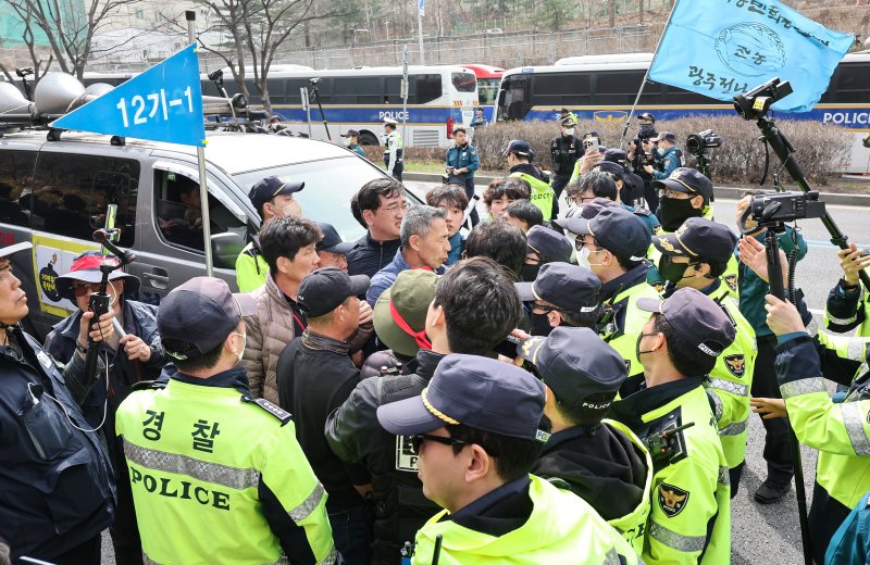 현장에서도 경찰을 향한 비난은 계속됐다. 지난 25일 서울 서초구 남태령고개에서 전국농민회총연맹(전농)이 '트랙터 상경 집회'를 주최하자 윤 대통령 지지자들은 상경을 막겠다며 집결했다.