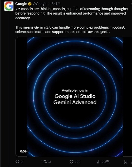 코라이 카북추오글루 구글 딥마인드 최고기술책임자(CTO)는 "제미나이 2.5는 복잡한 문제를 다루기 위한 사고형 모델로 AI 모델의 새로운 지평을 열 것"이라며 "이용자 피드백을 바탕으로 지속적으로 개선하겠다"고 했다.