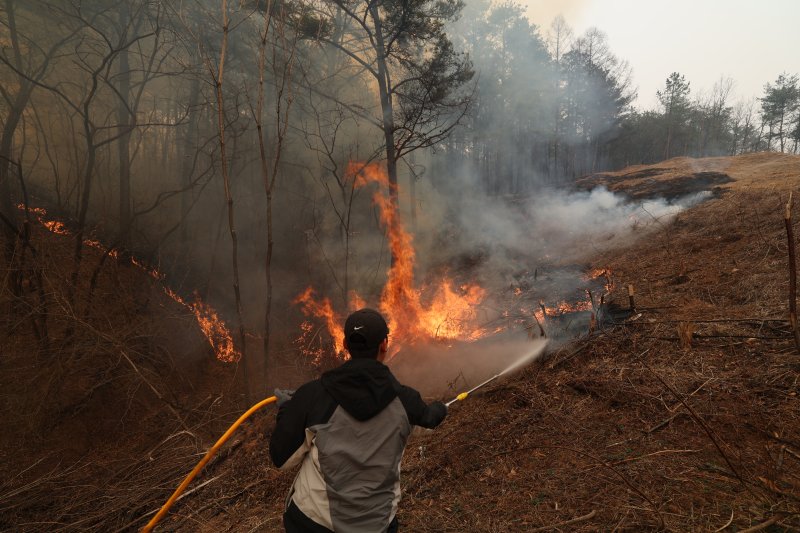 (영양=뉴스1) 정우용 기자 = 경북 영양군은 26일 오후 4시 23분 산불 확산으로 인한 주민 대피명령을 내렸다.