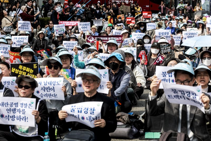 이들은 '2차 남태령도 시민이 승리한다' '내란공범 경찰은 연행자를 석방하라'고 적힌 팻말을 들고 "헌재는 윤석열을 지금 당장 파면하라"고 외쳤다.