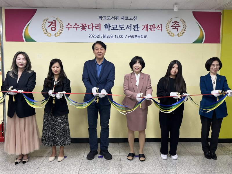 [용인=뉴시스] 이준구 기자 = 신리초등학교는 26일 학교도서관 새로고침 사업을 통해 새롭게 단장한 수수꽃다리 학교도서관을 재개관했다고 밝혔다.