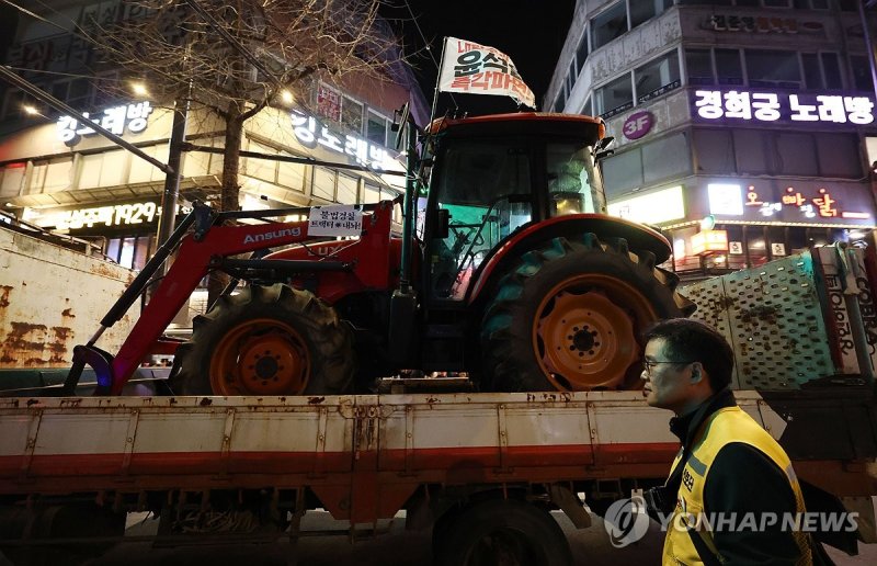 (서울=연합뉴스) 홍준석 이율립 기자 = 전국농민회총연맹(전농) 트랙터를 강제 견인한 경찰과 윤석열 대통령 탄핵 촉구단체 간 대치가 약 18시간 만에 종료됐다.