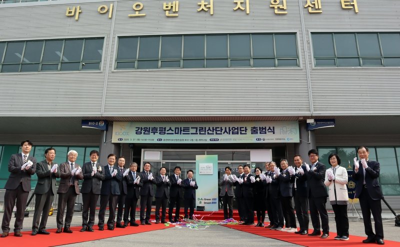 강원후평스마트그린산단사업단(이하 사업단)은 27일 춘천바이오산업진흥원에서 출범식을 겸한 현판식을 열었다.